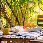 تحتوي الغرف في مكان الإقامة على الفناء والشرفة بالإضافة إلى لوازم كيّ الملابس والمكواة ولوح الكيّ ونظام التحكم المناخي لراحتك. وهي مجهزة بالغلاية الكهربائية وماكينات تحضير القهوة والشاي والبرَّاد. وتتميّز الحمامات بالمرحاض المنفصل والدوش، كما تشتمل على مجفف الشعر وملاءات الحمام. وكذلك يمكن للضيوف الاستمتاع بإطلالات على الجبل.
